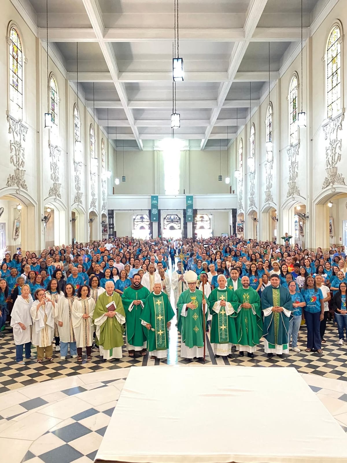 Após o momento formativo e um breve diálogo aberto, os catequistas seguiram em procissão rumo à Catedral de Santo Antônio, igreja jubilar da diocese. Às 11h, participaram da Missa Jubilar presidida por Dom Tarcisio Nascentes dos Santos, bispo diocesano.
