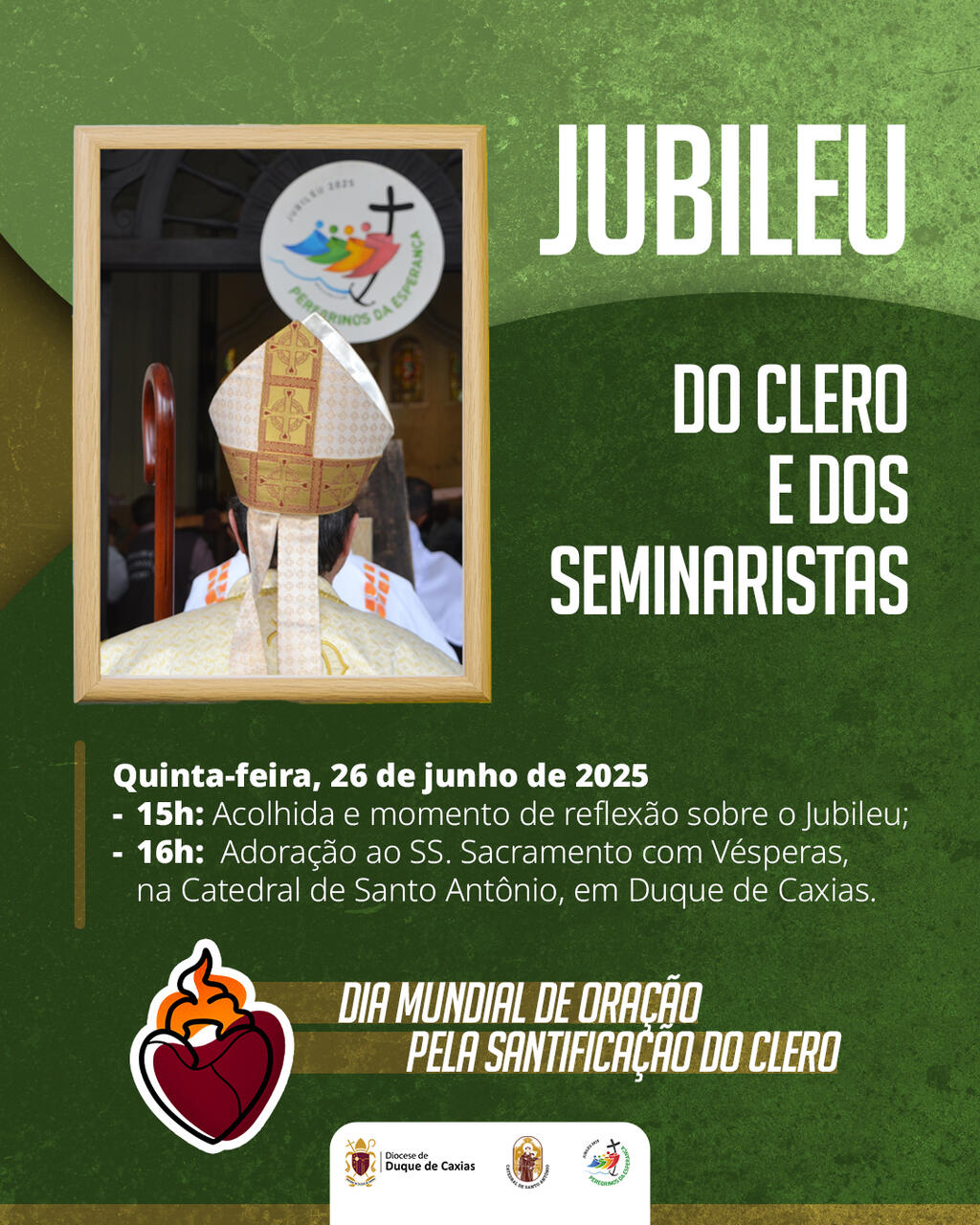 No próximo dia 26 de junho de 2025, a Diocese de Duque de Caxias viverá um momento especial de fé, unidade e esperança com a celebração do Jubileu do Clero e dos Seminaristas. A atividade faz parte das comemorações do Ano Jubilar 2025, proclamado pelo saudoso Papa Francisco com o tema “Peregrinos de Esperança” e o lema bíblico “A esperança não decepciona” (Rm 5,5).