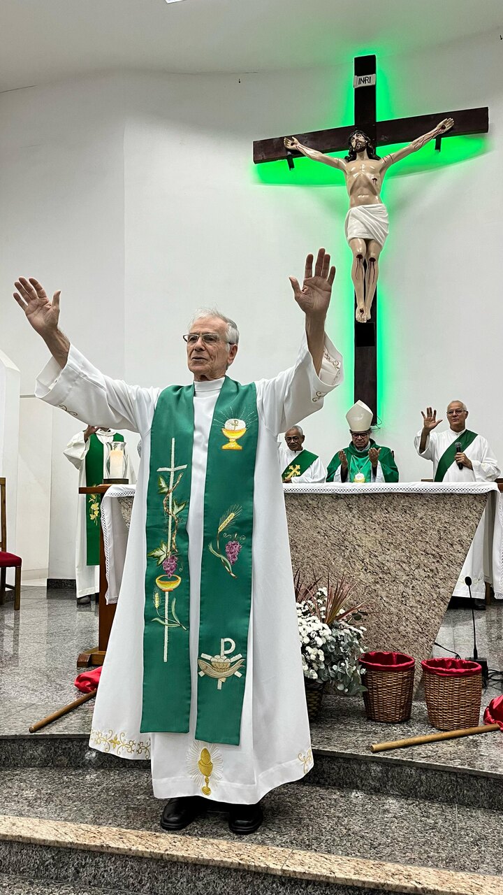 A celebração foi enriquecida pela presença do Pe. Geraldo Bernardes, primeiro pároco da comunidade, que celebrou junto com a paróquia o seu próprio Jubileu de Diamante Sacerdotal — ele foi ordenado presbítero em 29 de junho de 1965, apenas dois dias antes da criação oficial da paróquia. Sua presença emocionou os fiéis e simbolizou a união entre a memória e o presente da vida paroquial.